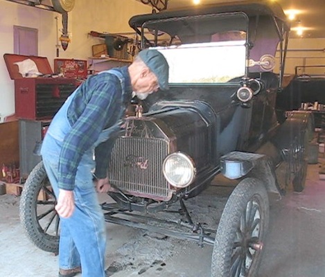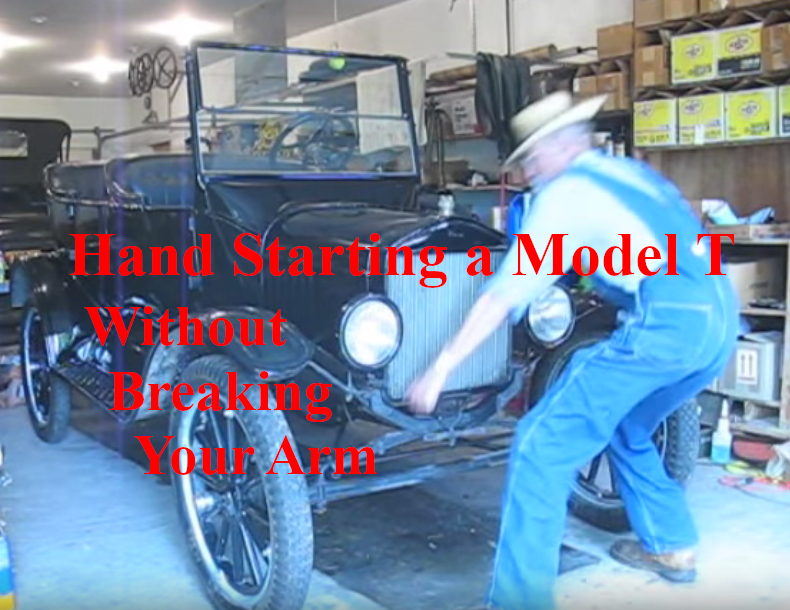 After seeing a video on Facebook showing a guy starting a Model T by pushing down on the crank with his right hand, and then spinning it with both hands, there were a lot of reactions from people who knew better. This was mine.