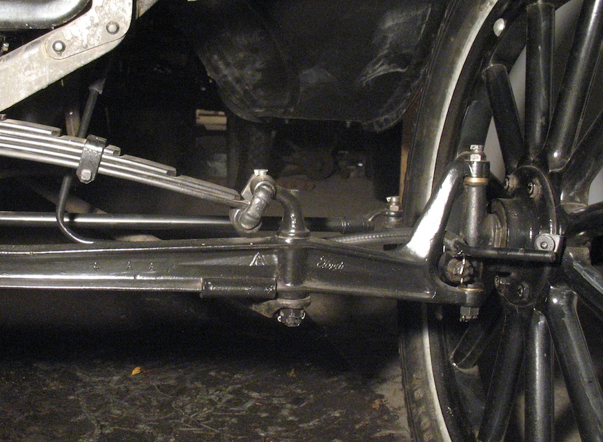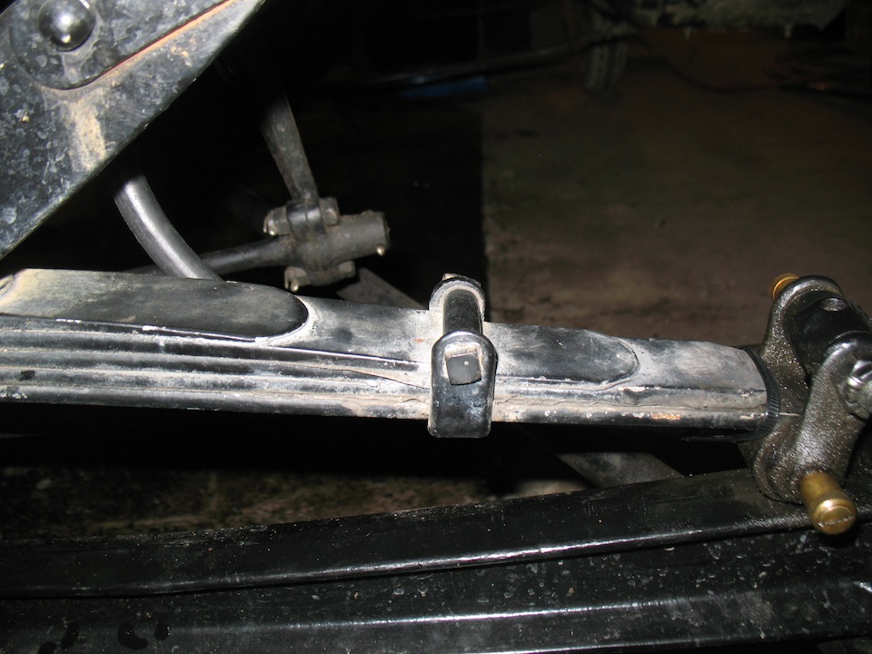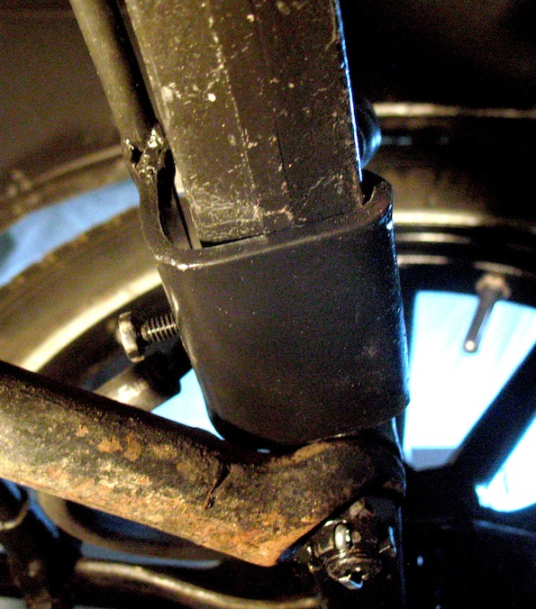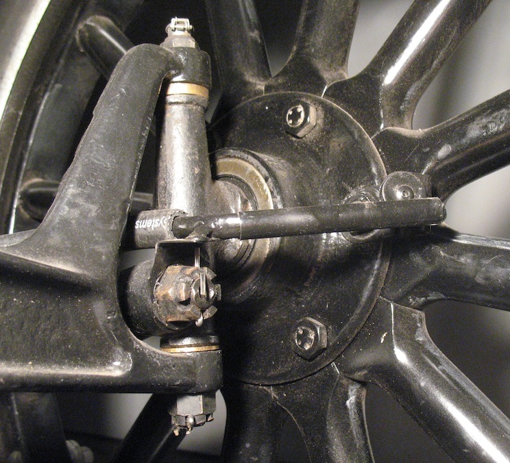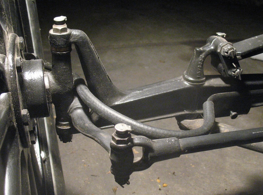 When it came time to install all this gear I found that the steel tubing stuck up too high to allow installation without removing the drag link and connecting rod. It was much simpler to just cut off the top part of the tubing about three inches below the bend and replace that upper end with another piece of hose. Next to the long