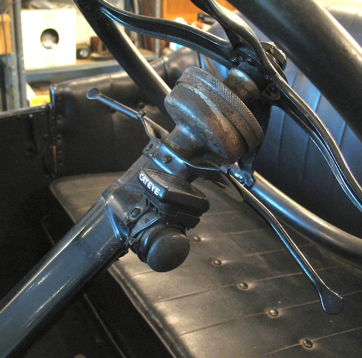 September 26, 2022 I now consider the bicycle speedometer in a Model T a failed experiment. It works wonderfully until it doesn't. I have now made that Detroit trip four times. On the most recent trip, finished a week ago, I didn't even try to use the bike speedometer because I have never had one survive a trip. Even the arrangement with the sensor inside a brake drum failed. You can try it, because it's relatively cheap, but based on my experience I would say you should expect it sooner or later to fail. My 1915 runabout is getting an aftermarket 1916 Stewart Model 100 originally sold for Fords. I will back it up with a GPS device. |