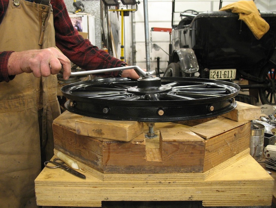 to put the wheel up on 2x4 blocks to get the hub all