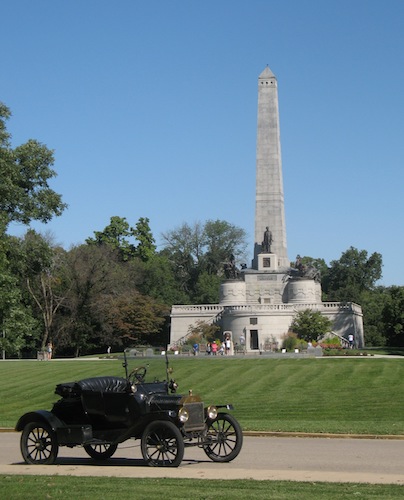 The third special adventure on my way home was in Springfield IL. The middle casting plug developed a leak that let most of the coolant out. Fortunately, although it was loose it didn’t fall out and get lost. I dried it, applied new sealant, and hammered it back in. It has been fine ever since. At Springfield I visited the Lincoln home, the old state capitol, the village of New Salem a few miles north, and the Lincoln tomb in Oak Ridge Cemetery.