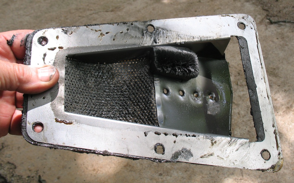 once. 1 Clean the mating surfaces (lid and hogshead) of oil and old gasket remains. 2 Smear one side of the new gasket with Ultra Black and stick it on the bottom of the lid with the holes lined up. 3 Smear the bottom (down side) of the gasket with Ultra Black. 4 Smear general purpose grease on top of the hogshead where it will contact the gasket. 5 Install the lid, tightening the screws enough to flatten the sealant against the hogshead but not fully tight. 6 After the sealant has had time to set up, tighten the screws. You have made a permanent reusable gasket. Whenever you remove and replace the lid, just apply new grease to the hogshead. If you are using a transmission screen (you should), you can use two gaskets and follow this procedure to make permanent gaskets on both the bottom of the screen and the lid. Simply apply fresh grease to the top of the hogshead and the top of the screen each time. |