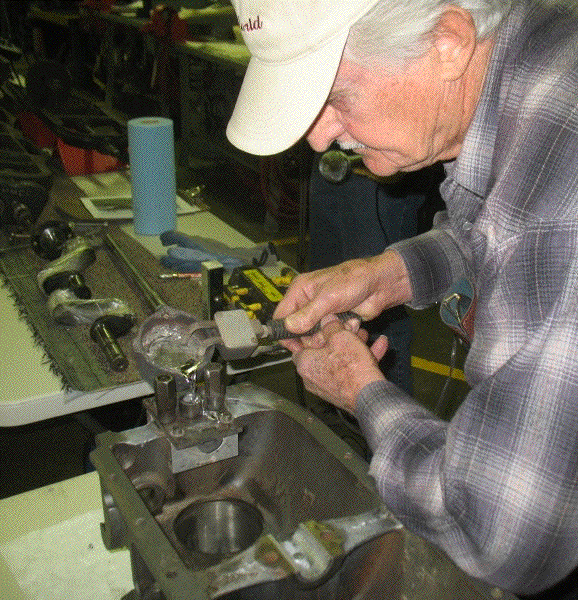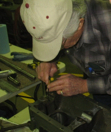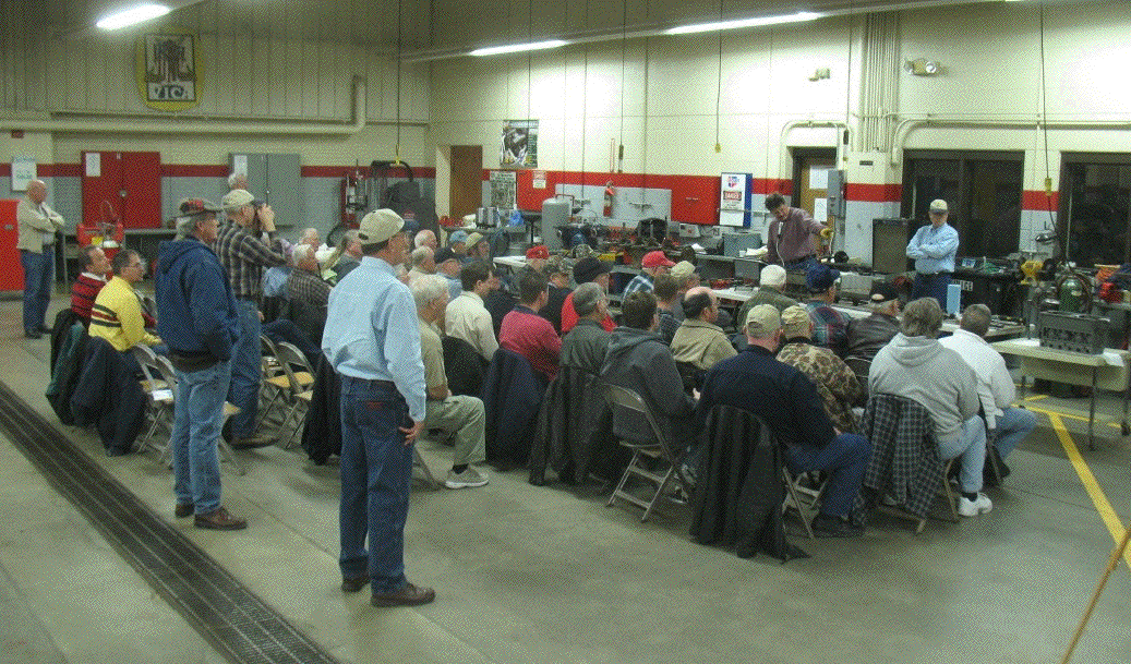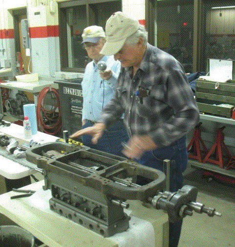 The Sunflower State Crankers met in Hutchinson for their annual midwinter Model T clinic. Most of the day was devoted to pouring and boring babbit bearings. Several kinds of boring equipment were displayed. Claire Banta demonstrated pouring the bearings, then showed how to set up and use the boring machinery.