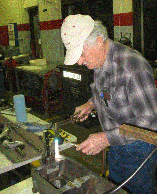Right: The block is heated to 400º to help the babbit metal adhere. |