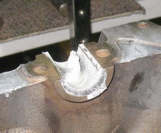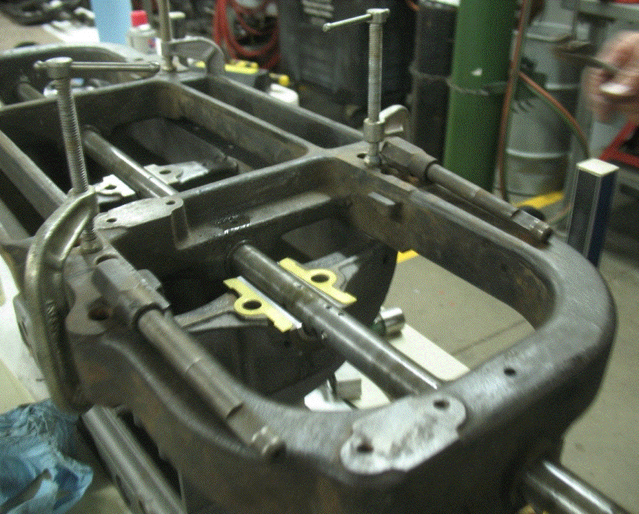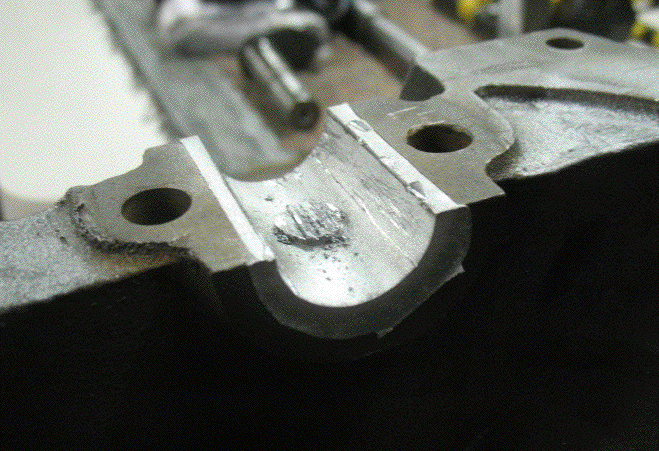 A mold is bolted on where the bearing will be poured.