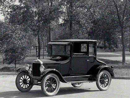 Springtime in the heyday of the Model T was a delirious season. Owning a car was still a major excitement, roads were still wonderful and bad. The Fords were obviously conceived in madness: any car which was capable of going from forward into reverse without any perceptible mechanical hiatus was bound to be a mighty challenging thing to the human imagination. Boys used to veer them off the highway into a level pasture and run wild with them, as though they were cutting up with a girl. Most everybody used the reverse pedal quite as much as the regular foot brake - it distributed the wear over the bands and wore them all down evenly. That was the big trick, to wear all the bands down evenly, so that the final chattering would be total and the whole unit scream for renewal. The days were golden, the nights were dim and strange. I still recall with trembling those loud, nocturnal crises when you drew up to a signpost and raced the engine so the lights would be bright enough to read destinations by. I have never been really planetary since. I suppose it's time to say goodbye. Farewell, my lovely! |