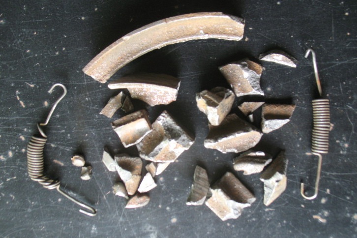 that the brake shoes had been broken up by the hub