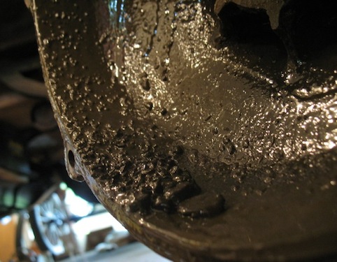 silvery oil with little chunks in it. That