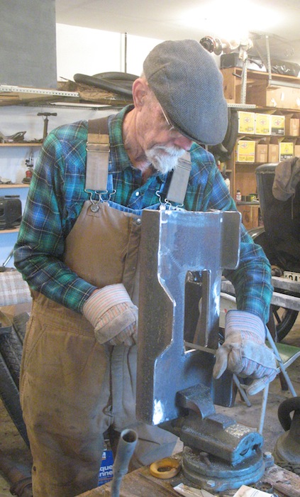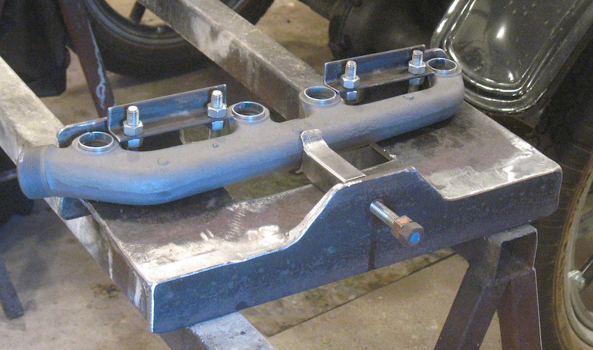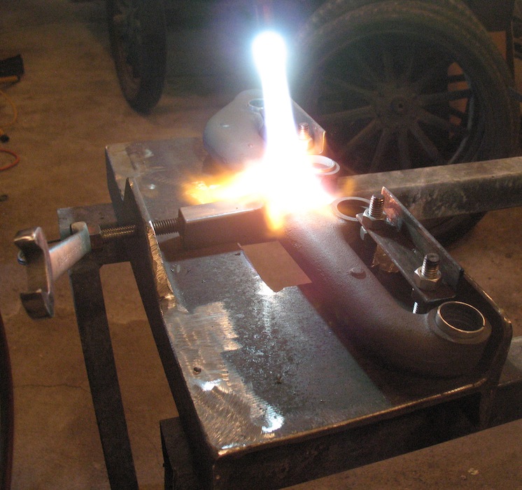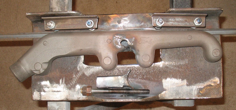 My pleasure at the results died when I turned the manifold over and saw what happened where I heated it from below. Obviously, I got the heat source too close. Fortunately I have several junk manifolds I can use for practice until I really learn how to do this job. This is definitely something to avoid. I consulted a shop that does cast iron repair and was advised that having this manifold fixed would cost about the same as buying a new one. |