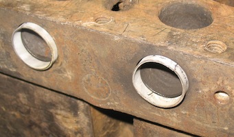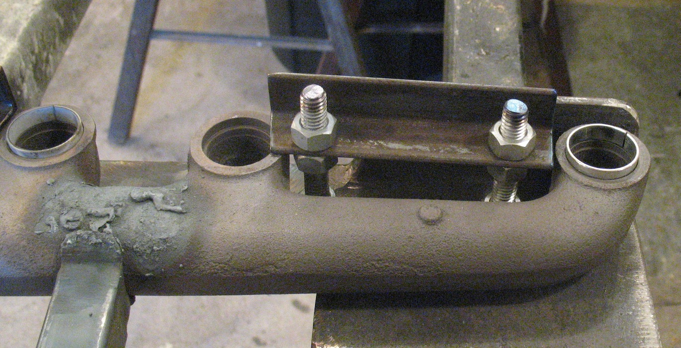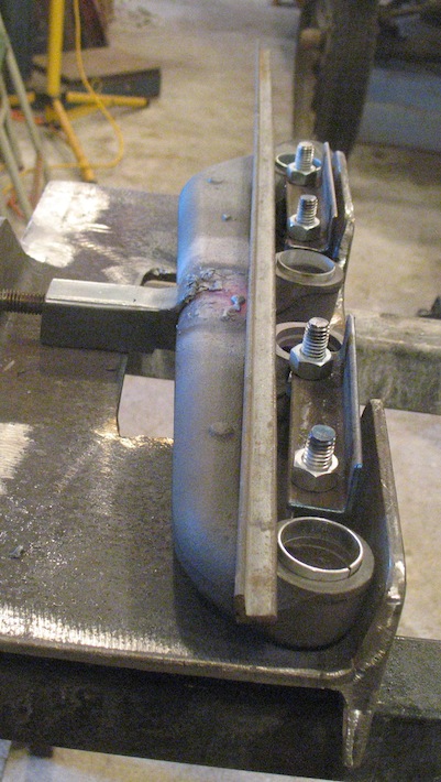 But I found during straightening that removing the bend in the middle also moved #1 and #2 farther from #3 and #4, and I had to pull the ring out of #2 to let the manifold move. I think my answer to this will be longer pieces of angle iron that will go over the rings instead of between them. |