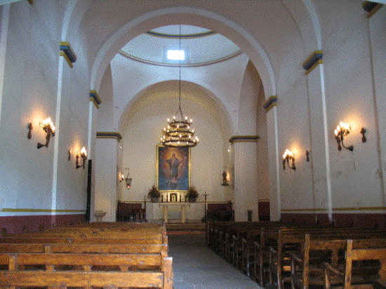 This was one of five missions built a few miles apart along the San Antonio River in the eighteenth century. Each mission was the center of its own little village. Eventually the city of San Antonio grew to include all of them. The local Indians were perfectly willing to give up their nomadic ways to settle down at the missions and adopt Spanish culture, but the Kiowas and Apaches were having none of it. They repeatedly raided the settlements, stole horses, and inflicted considerable unpleasantness. Each mission church was inside a large walled area which also contained the homes of the Franciscan misisonaries and the Indian villagers, as well as all the mission workshops. |