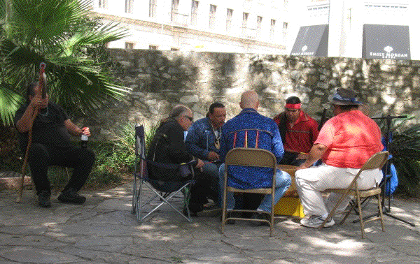 Yesterday some Native American drummers and dancers were having a bit of a powwow next to the Alamo. |