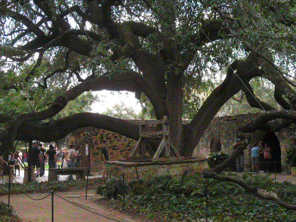 This live oak was estimated to be about forty years old when it was transplanted next to the Alamo in 1912. |