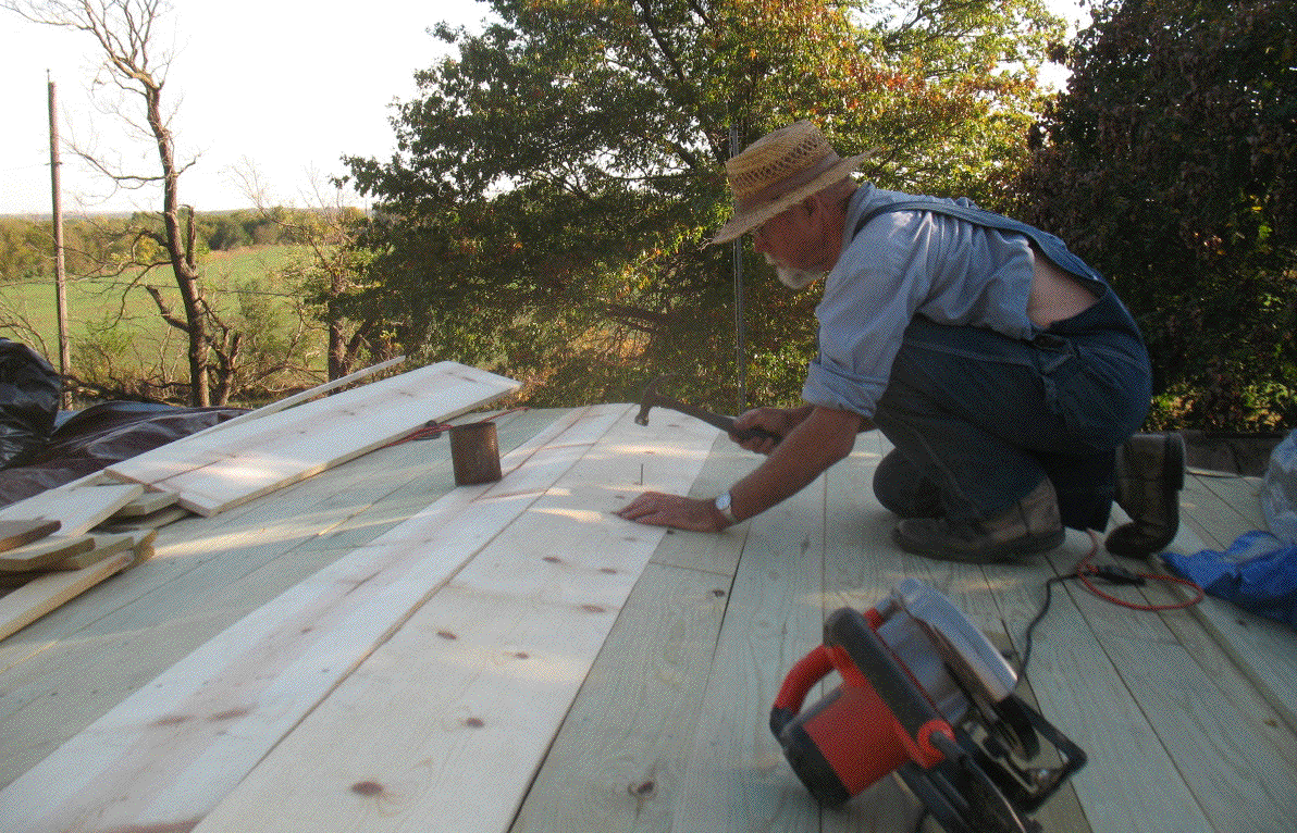 Today I put up the last board on the north end overhang and got a good start on the southeast overhang. I took a couple of hours to check out an auction between Oxford and Geuda Springs where there were several interesting items for sale. But it was a big one with several antique dealers present, so things were selling for more than I was willing to pay.