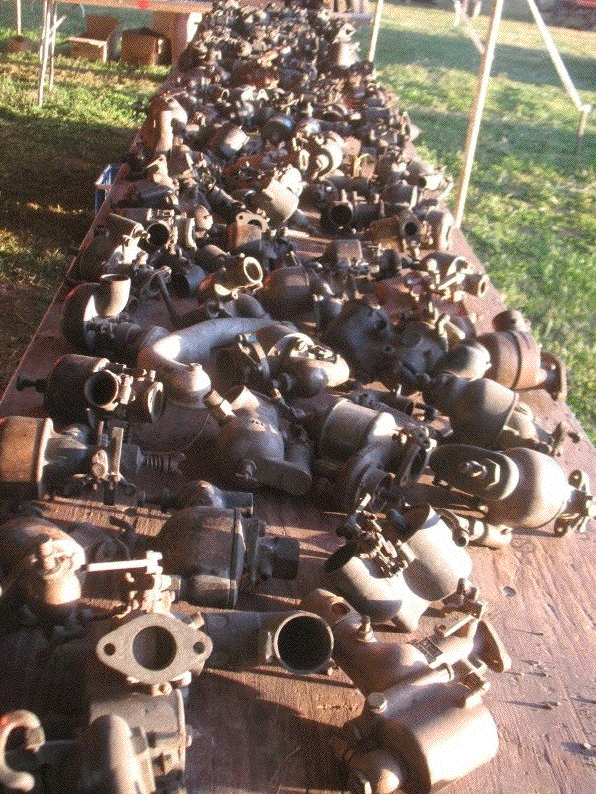 The second day of the sale had a much smaller crowd, but there was still a lot of good stuff for sale. I bought five Holley G carburetors, three Holley NH's, and a couple of Kingstons, all for $10 each, and a box of Model T spindles, and a box of Model T perches and spring shackles, and a box of T tools, and a box of T and early Cadillac tools, and a few other parts, some to use but a lot of them to clean up and sell.