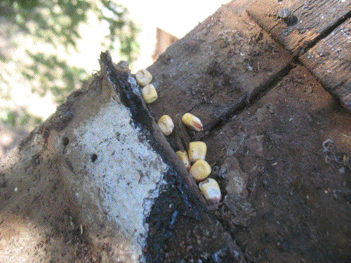 Before the good weather goes south for the winter I need to get busy on the roof, so today I started taking old shingles off the front. Based on how much I got done today, it may take all week just to remove all the old roofing. There are two layers of asphalt shingles over a layer of wood shingles. Between the asphalt and the wood I found a few kernels of corn some critter had stored away. Maybe I'll plant it and see if it grows, like seeds from an ancient Egyptian tomb.
