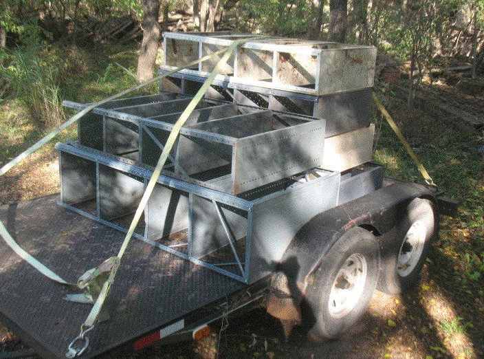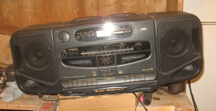 From eight to almost 8:30 I hit the ditch with pick and shovel and got all the shallow parts dug down to the proper depth in the section that runs north-south. Tomorrow I'll finish up the east-west section. At 8:30 I was off to the the first auction of the day. At the Defore auction in Winfield I read the newspaper while I waited until a cast iron cornbread pan came up for sale. I bought that for $5, then headed for a Patterson auction in Wellington. There I paid $12.50 for a good working JVC stereo with radio, CD, and cassettte tape functions. That was all I wanted there, and I went back to Winfield. I got there just as they were getting to the outdoors stuff. I ended up getting six units of metal shelves for an average of $2 each. I went home and hitched the trailer to the Subrurban, went to Winfield, and brought home my shelves. One set is pretty nasty with rust, but that's no big thing. The next time I do any sand blasting I'll include those shelves, then spray on a coat or two of new paint. They'll be fine, for a lot less than the cost of the same ones new from a store. I do love auctions.