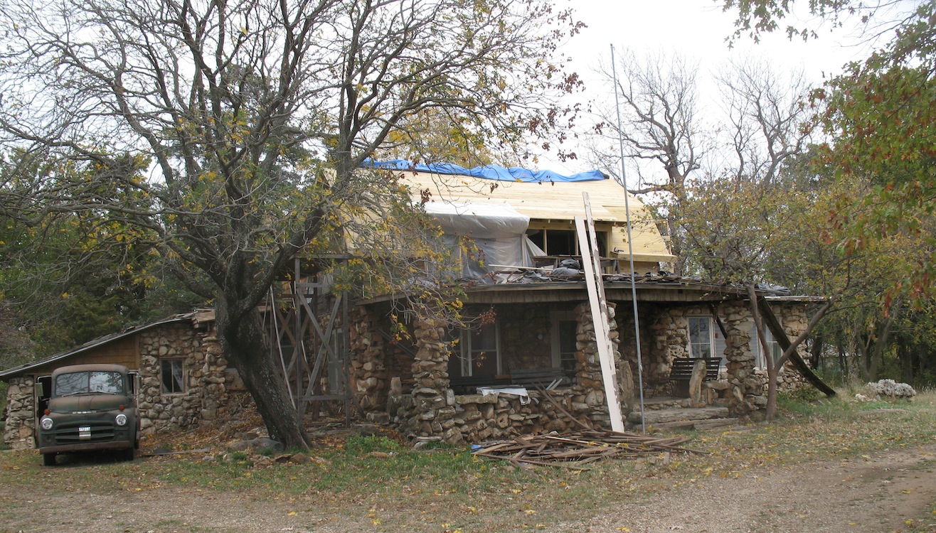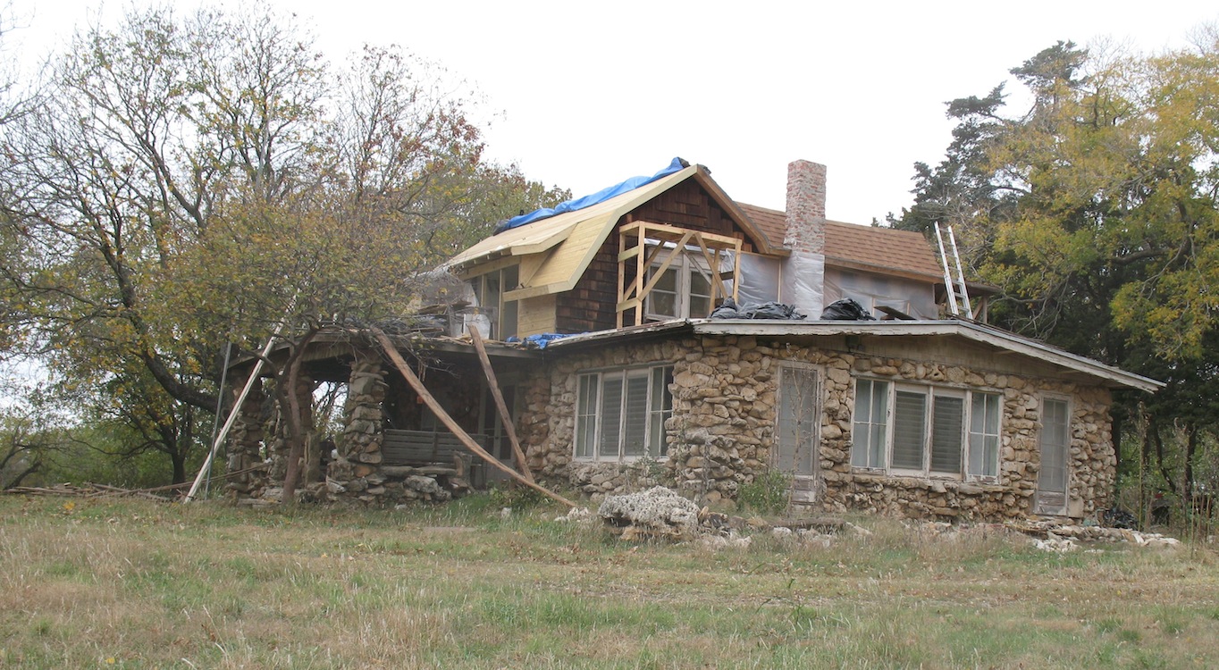 place and worked inside, taking down sheetrock and the old wood lath