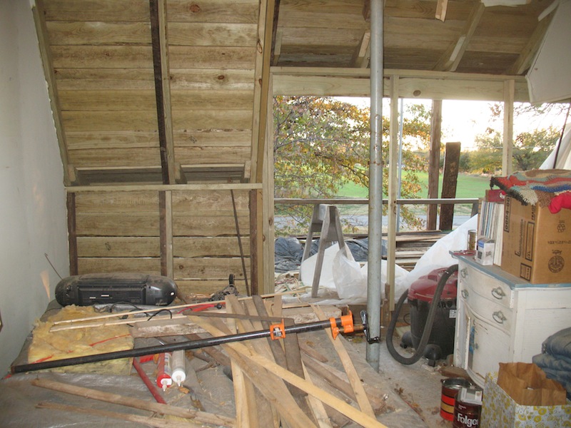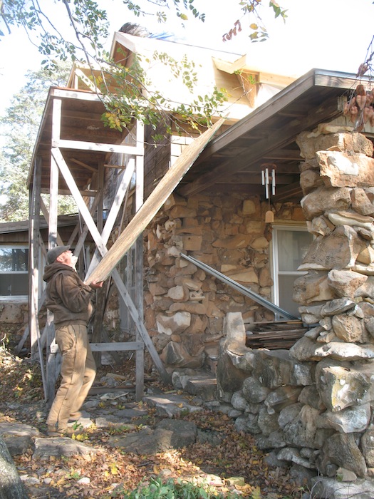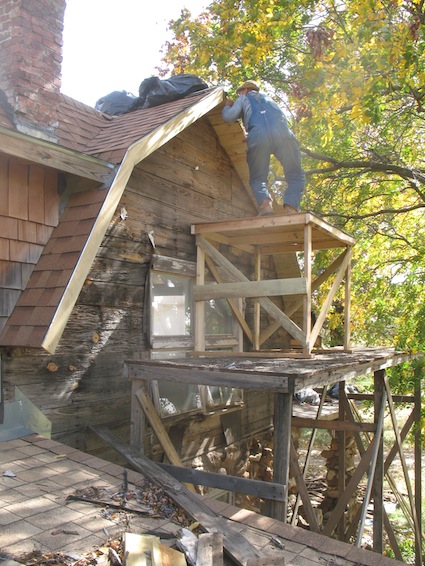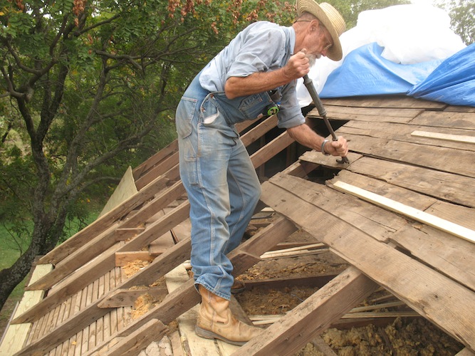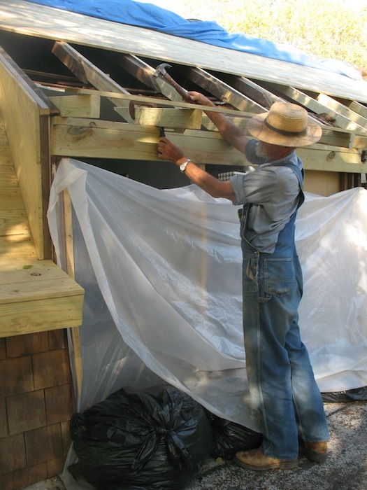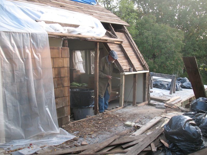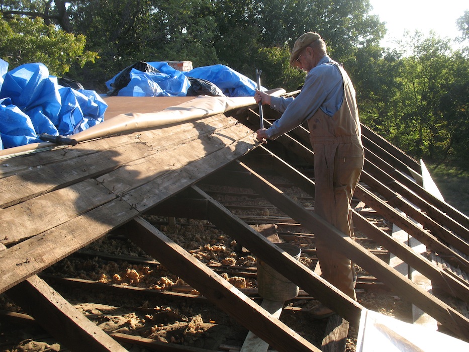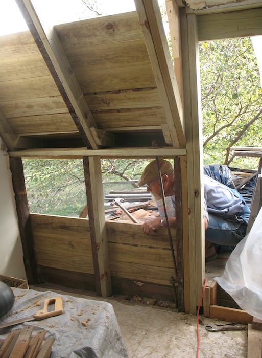 lower roof and the wall under it, and took a few more old boards off