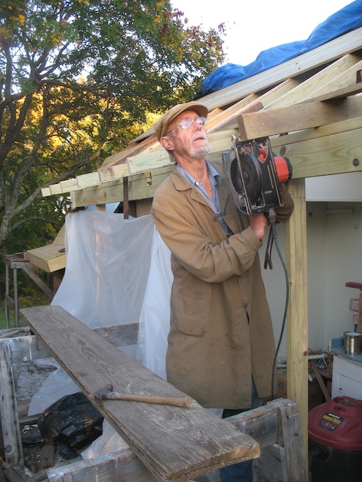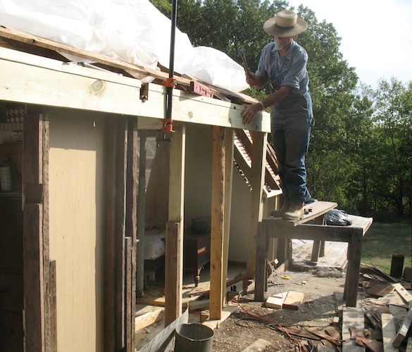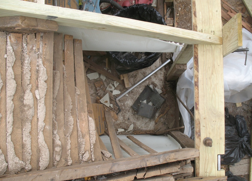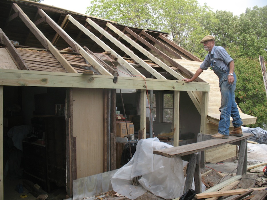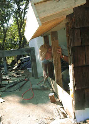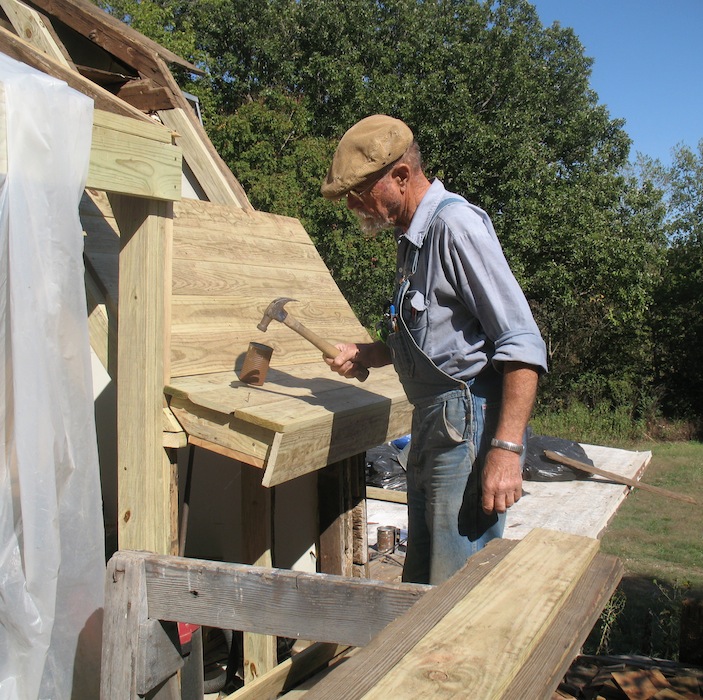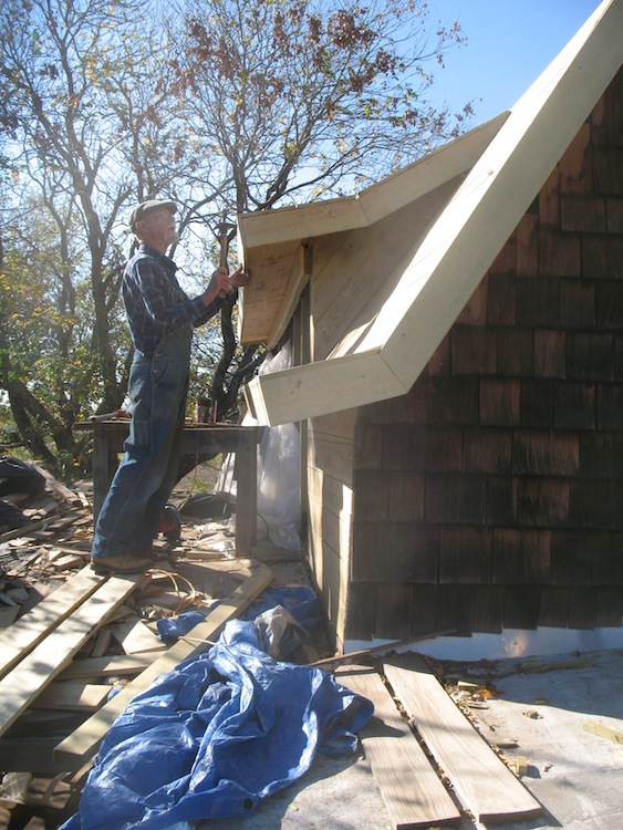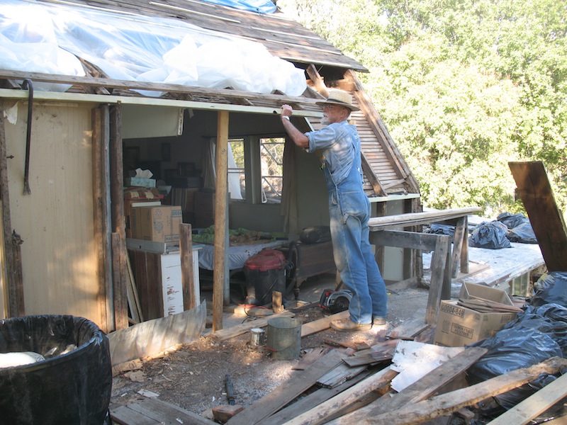 lower roof and the wall under it, and took a few more old boards off