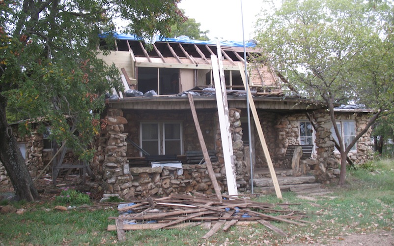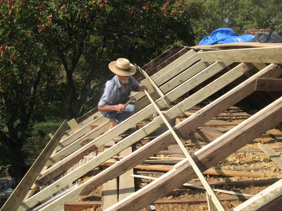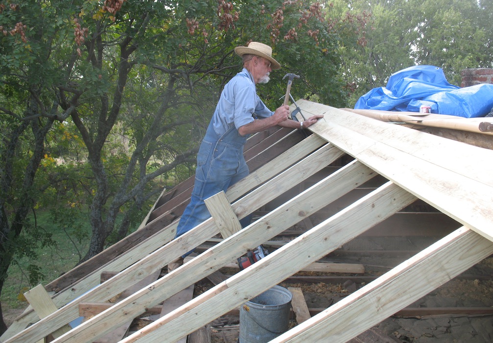 the roof and putting up new rafters. The evening brought
