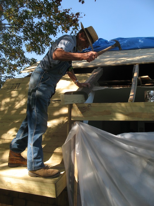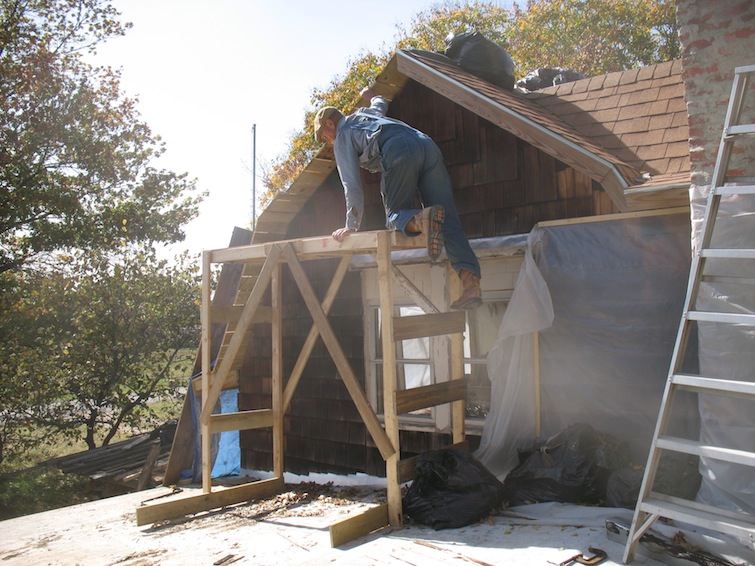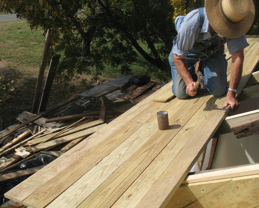 ended, on the roof removing old boards and cleaning up the mess. Before
