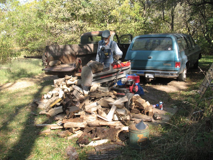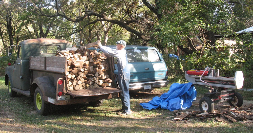 | Monday, October 19, 2015 This morning's main job was stacking all that cut and split firewood in the garage out of the weather. I've almost finished stacking the first row against the wall, but there's still room for another foot or two on top. When that's done I'll start a second row where I'm standing in this picture. If I can get two full stacks laid in, that should last a good long time. In the afternoon I went for a nice drive. In the almost eight years since I got serously into Model T Fords, I've spent a lot more time working on them than driving them. I intend to fix that. So today I drove to the county seat, Winfield, about ten miles north. I went to the bank, to the post office, and to do some shopping. But the main reason for the trip was the bridge. Yesterday I read that the Fourteenth Avenue bridge across the Walnut River, built in 1928, is to be replaced. So I wanted to get a picture of it while it's still there. The self-timer on my camera is good for only ten seconds, so I stopped a passing motorist to push the button as I drove across the bridge. I stopped at Kora's Asian market to buy a couple of jars of kimchi, and headed home. About halfway between Winfield and Arkansas City my twenty dollar bike speedometer quit working. It turned out that the magnet attached to the wheel to activate the sensor had fallen off somewhere on the road. When I install a new magnet, I'll make sure it's not going to come off. In Arkansas City I bought a couple of feet of new hose for my tire pump, and some spade connectors to hook up the new battery I'm going to put in the roadster. Those sound like a couple of easy jobs that should take a few minutes, so they'll probably take most of a day. |