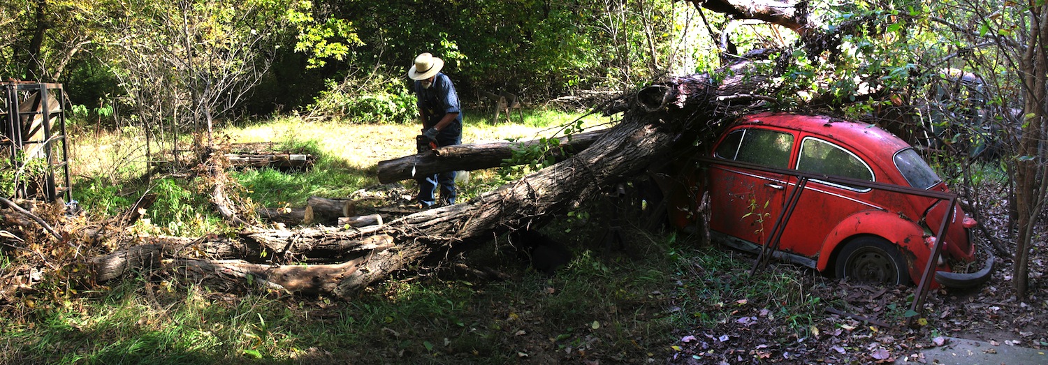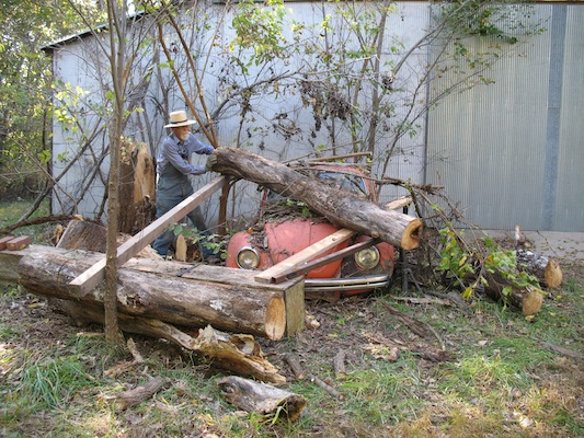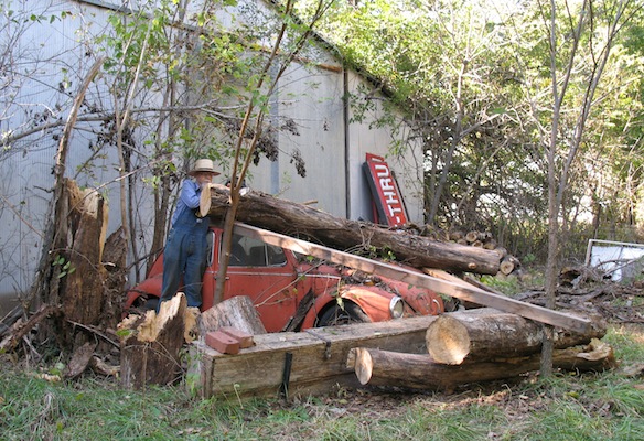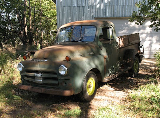 I thought I'd start on that fallen tree today, but didn't make it. I finished cleaning a parking spot in the barn, then took a picture of the truck parked in there. I took another picture of it outside. Those photos were to go with the insurance application I filled out and put in the mail. I'm attempting to get antique insurance on the thing to save a pile of dough. The previous company I tried rejected it because it's not restored, so we'll see how this one goes. |