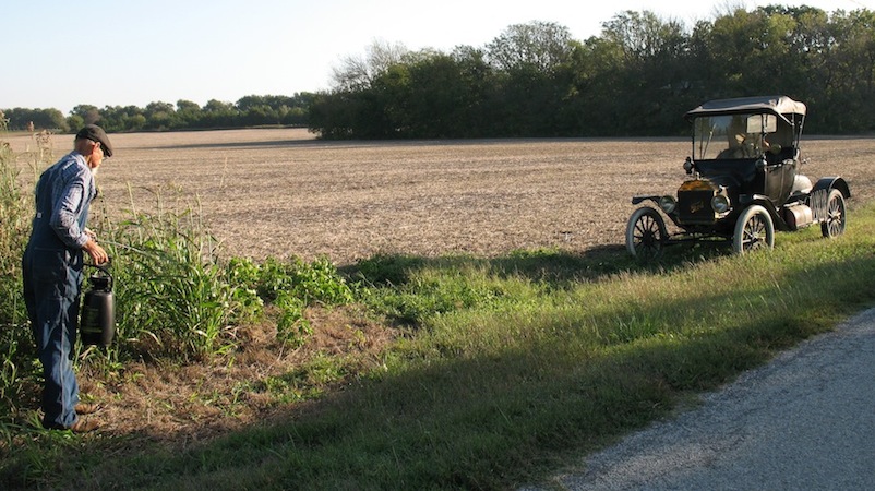With rain in the forecast, today's first job was putting all the sandblasting equipment away in the barn, and getting other tools that were outside moved inside. In the shop I got started on removing the loose and rattling crank pulley from the runabout and installing the better one I bought at Hershey and fixed yesterday. That called for removing the headlights and radiator so I could reach the front of the engine. I got as far as putting the pulley onto the shaft, but had to quit about three for another trip to Wichita, this time for a movie. It was Marshall, one of those pictures for grownups about something real that often don't make it down here to Podunk. Chadwick Bozeman and Josh Gad are outstanding in the lead roles, but so are the other actors, which indicates a good director (Reginald Hudlin) and a good screenplay (by Jacob & Michael Koskoff). It was certainly worth the long drive to Wichita, even in the rain. |