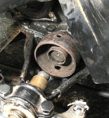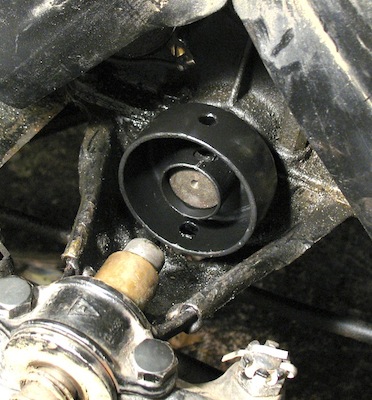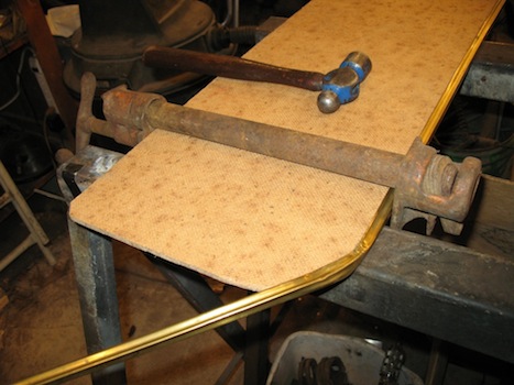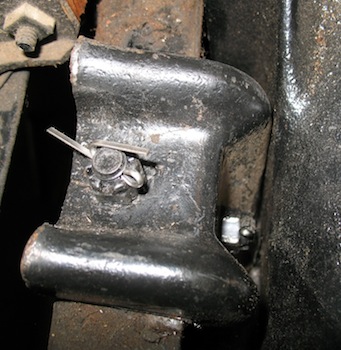 My first attempted project today was bending the brass channel for the new roadster windshield. It was soon obvious that what I was doing would end in a mangled mess. I'll have to make some special tools for that job. So instead I went back to work on the touring car, installing the pan arm bolts. Especially on the left side, with very limited space to work, what looks like a simple thing takes approximately forever. Eventually I got the nut and cotter pin on that last horizontal bolt, but it would be much faster work with two people doing it. |