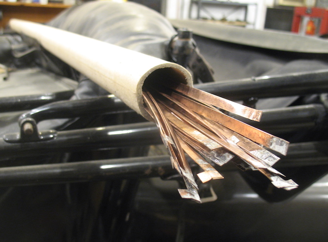 The final step is wire brushing to remove any little bits of old insulation that may have survived the cleaning. |