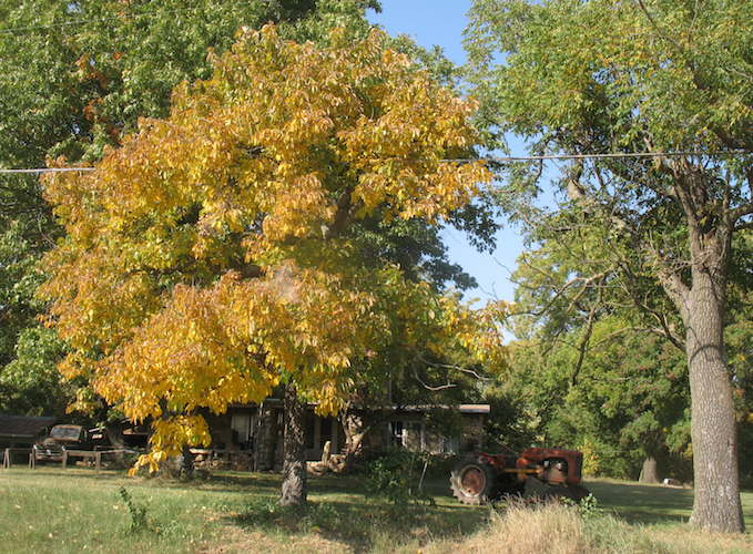 Back to mowing. I mowed the lane to the wood lot, the south side of the road all the way east to the property line, and most of the lawn around the house. I also harvested about 3½ pounds of persimmons. I don't know if the persimmon tree is one of the original trees planted 150 or so years ago, but it's been there for as long as I can remember. In the 35 years I've lived here I've never used any fruit off the tree, but I've decided this year I'll try a pie. If it turns out OK I can make another one, as there's a lot more fruit left on the tree. |