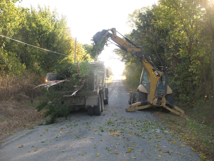 The plan was to make legs and braces for the scaffold today. But my old sawhorses were falling apart, so I spent most of the day making a couple of new ones. The old ones are in such bad shape they will be firewood this winter. I'll get back to the scaffold project tomorrow. Monday, October 12, 2020 And so I did. Except for a half-hour run to town for nuts, bolts, and washers, I worked on it all day. I expect to finish it up tomorrow. Why is it taking so long? Because I'm not just making it up as I go along and nailing boards together. This time I'm being more careful with the design and making it to bolt together so I can take it down and store it out of the weather between uses. The scaffold I used when I rebuilt the upstairs west wall of the house sat in the weather for several years and this spring was in such bad shape that I dismantled it and cut it up for firewood. This new one should be the last I need to make, and I'm designing the legs to be adjustable for different heights. Tuesday, October 13, 2020 Done. I finished the scaffold a little before 2 PM and went to town for groceries, medicine, and other supplies. When I got home and put away the goods, I moved the scaffold around to the east side of the house and set it in place ready to go to work tomorrow. I made it light enough that I can easily roll it around on a dolly. It's too unwieldy to carry. It turned out to be just the right height for the job I have to do there, so I don't have to install the leg extensions. I'll need them later when I treat the upstairs walls with water seal. Wednesday, October 14, 2020 The township road guys came and saved me a lot of work, taking out some trees between the road and the lane to the wood lot. I had plastic bags tied to the ones I wanted to save, all red buds except one hedge tree I'm keeping for lumber. The lane lined with booming red buds will be a pretty April display. I got up on my new scaffold and got to work on the house. This is a job that wasn't done when I mostly finished the outside of the house a few years ago, shingling the wall above the east living room windows. |