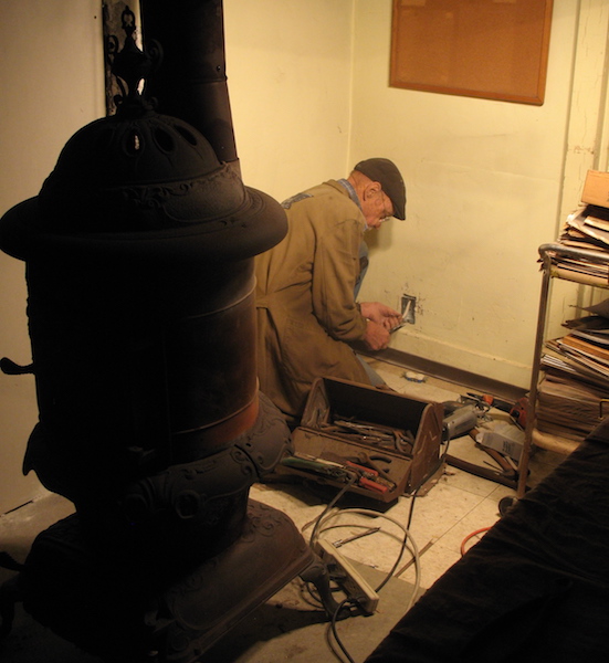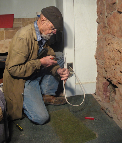 Made it. I finished up about 4:30, leaving me time to bring in kindling and lay the evening fires before feeding the cats and chowing down about five. My original plan was to drill down into the cellar and connect the Romex into the wiring down there. But then I realized that there was another outlet in the living room, only about a foot from the one I was installing in the kitchen. So I pulled the living room outlet out of its box, drilled through the stud behind it, and ran the wire directly across to the hole in the kitchen wall. All of this was with the power turned off, of course. I used a couple of hundred foot extension cords to bring power from my shop into the house for the drill, saw, vacuum, and lights. When I went to town for an outlet and box and to stock up on groceries, I wanted to buy a couple of ice picks. Those are sometimes a handy tool for jobs other than breaking up ice. I looked at the kitchen tools at the Walmart, the hardware store, both dollar stores, and the market. How many ice picks did I find? Zero. Incredible. |