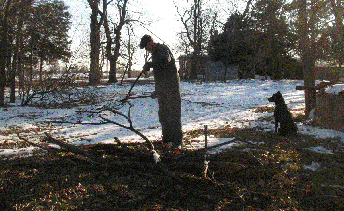 Cutting wood was a good choice of activities, as cold weather during the coming week would create a need for it. My cousin Marge died on Monday, the fourth, and by the day of her funeral on Friday the morning low was zero. I used the old gas heater in the living room for the first time in several years that day. By afternoon the outside temperature was in the mid-teens. It was sunny, with no wind, so the gathering at the cemetery wasn't too bad. With the gas heater going and a fire in the fireplace, people were able to warm up here before and after the funeral. In the past week the weather has returned to normal, with highs in the thirties and forties, and the forecast for the next week is for above-normal fifties. I hope I can get some outdoor chores done.