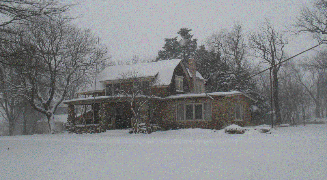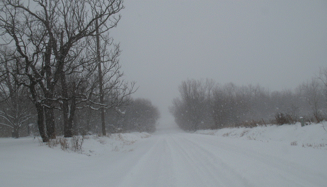 Well the snow arrived later than expected, and by daylight it looked like only about an inch on the ground. But it kept snowing all day, and by nightfall there were several inches on the ground. Happily, this storm didn't include the heavy winds that came with the last one, so the snow was evenly spread and there were no deep drifts. This afternoon I had to go back to town to buy a new heater. I use a small heater to blow warm air aross the back of the steel lining of the fireplace, so that the air is further warmed as it circulates out into the room. The little heater I've been using for several years finally expired, so it was time for a replacement.
