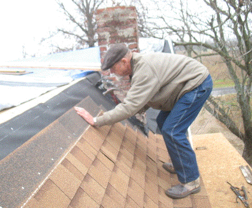 I got started on the roof a little after eight this morning and worked on it until five. With rain in the forecast I needed to get ready for it. It was a cloudy day with temperaturtes in the fifties. A chilly breeze from the north had me using a lot of tissues for nose wiping. It was slow going, cutting shingles to fit around the chimney and up the valley next to it, and sealing the edges with roof cement. I finally ran out of time with a few rows to go, so that chore awaits in a few days when the weather clears.