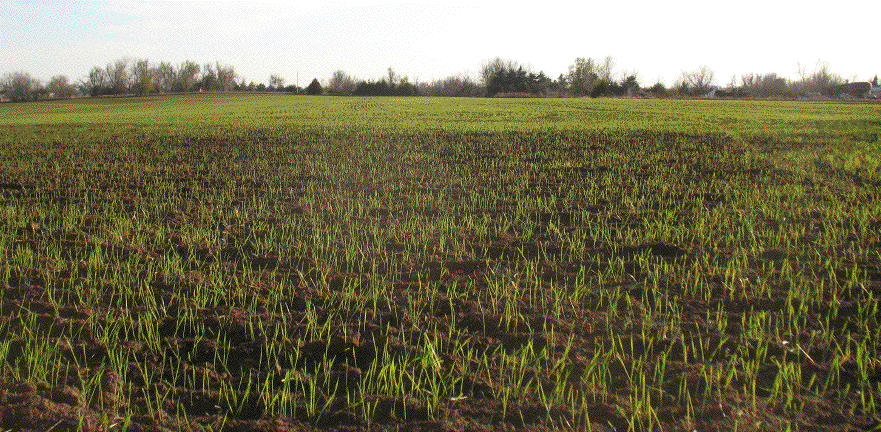 Next year's wheat was planted about two weeks ago, and recent rain has it off to a good start. When the weather cools down some more, it will go to sleep until spring. I went across the road to take this picture while I was out doing some planting. Last month I bought a butterfly bush and a rose bush when the lcoal hardware store had its 75%-off plant blowout. This afternoon I planted the butterfly bush west of the house. Tomorrow I'll plant the rose bush in front. I still have a couple of rose of sharon bushes I bought in September at 50% off, and I need to decide where I should plant them.