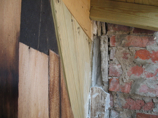 This afternoon I finished putting up the new boards on the north half of the southeast overhang. Next on the agenda is installing particleboard panels on the roof before putting on the shingles.