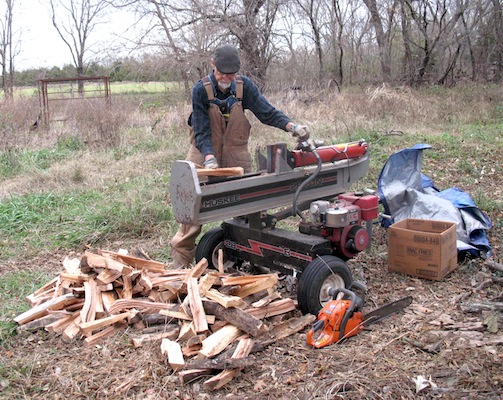 chain saw and the splitter, laying in enough firewood to last a few