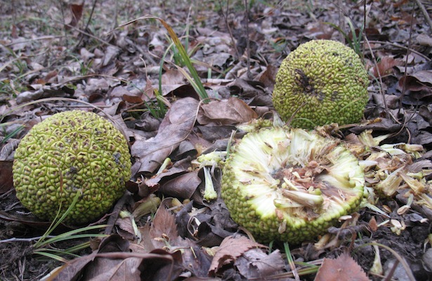 (Osage orange) are on the ground.