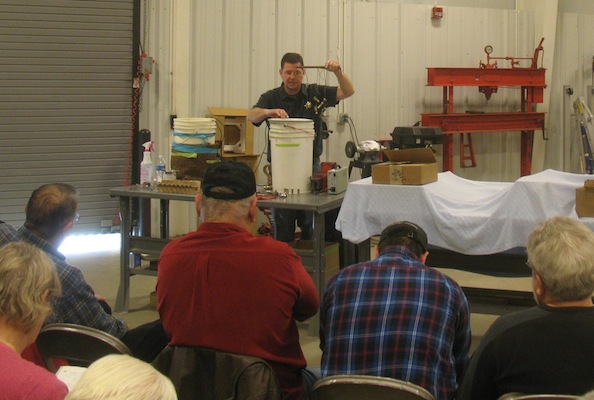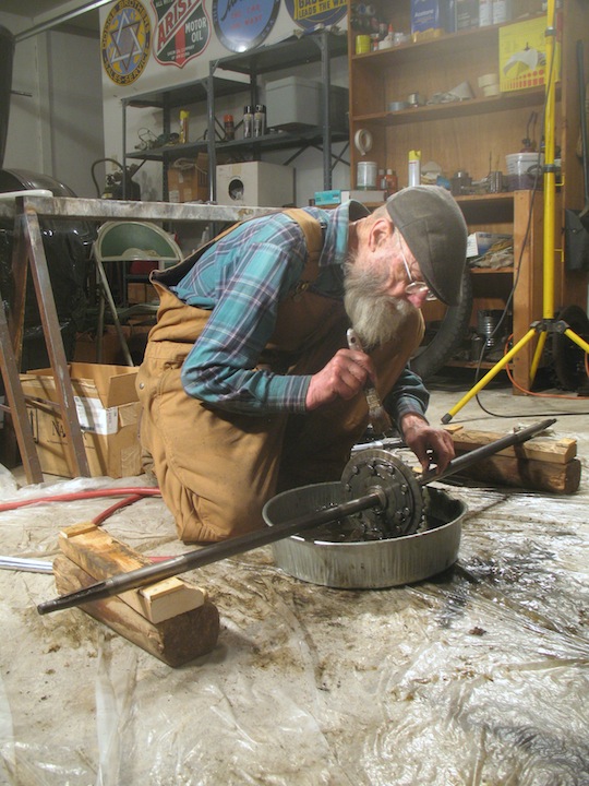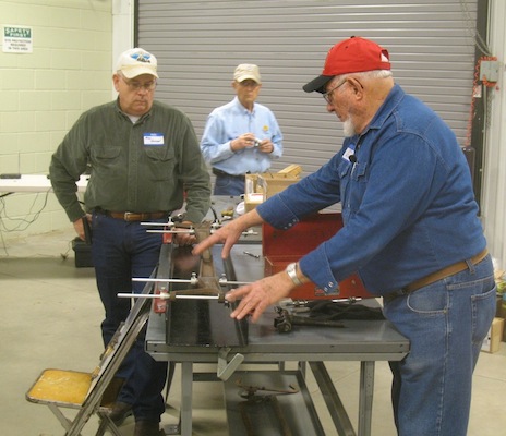 Vaughn (L), Bud Redding demonstrated front axle repair.