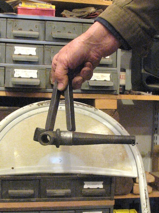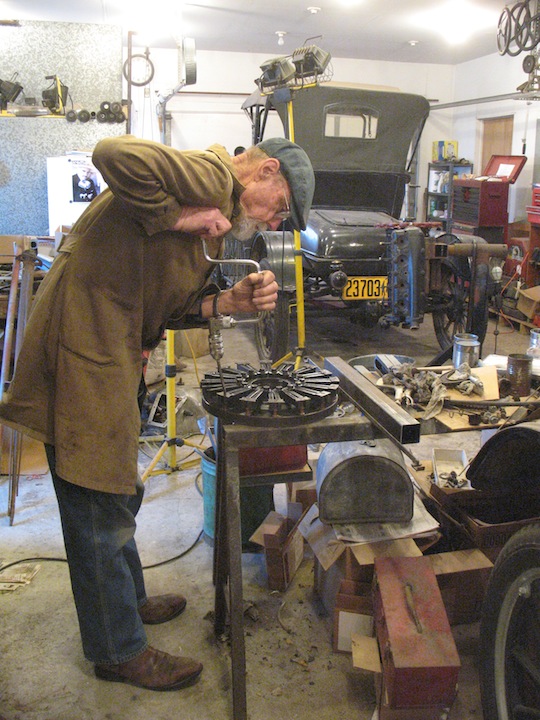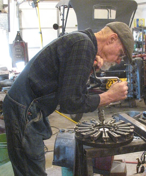 I began the new year working on my transmission/magneto repair. The mag coil ring is festooned with fuzz from the transmission band chewed up by the bad reverse drum, so there's plenty of cleaning up to do there. I spent most of the day removing the magnets from the flywheel and cleaning all the parts. After breaking the first magnet screw trying to remove it, I ground the peened ends off all the others before unscrewing them. An old time brace is a handy tool for removing the screws. This evening I carried on the southern tradition of a New Year's meal of black-eyed peas and corn bread for good luck in the new year. I don't subscribe to the superstition, but I like the food. |