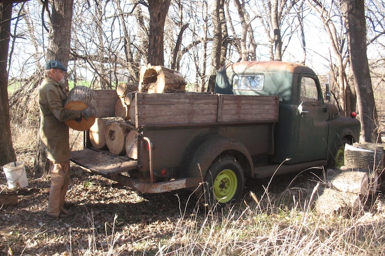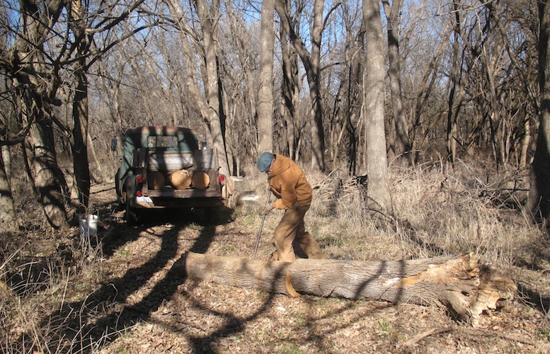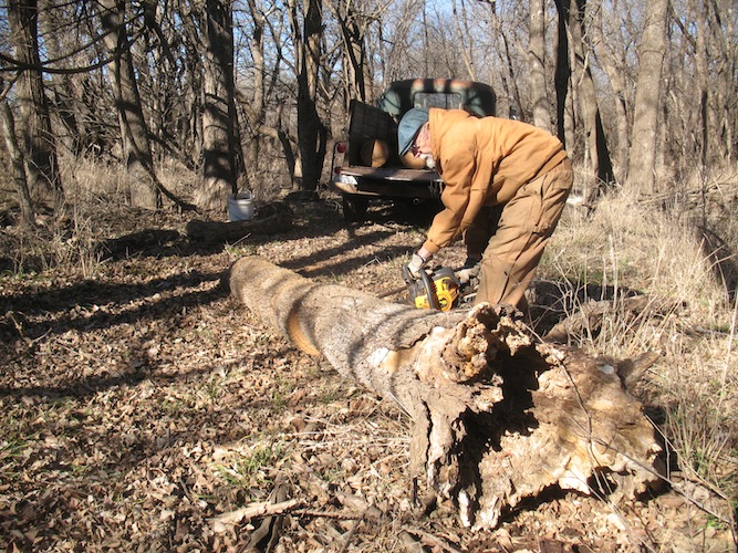 Rolling the log over to finish the cuts.