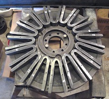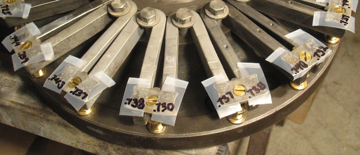 Today I started reassembling my magneto, installing the magnets on the flywheel and measuring the height of each one. They need to be even within a few thousandths, so I'll make shims for the low ones. |