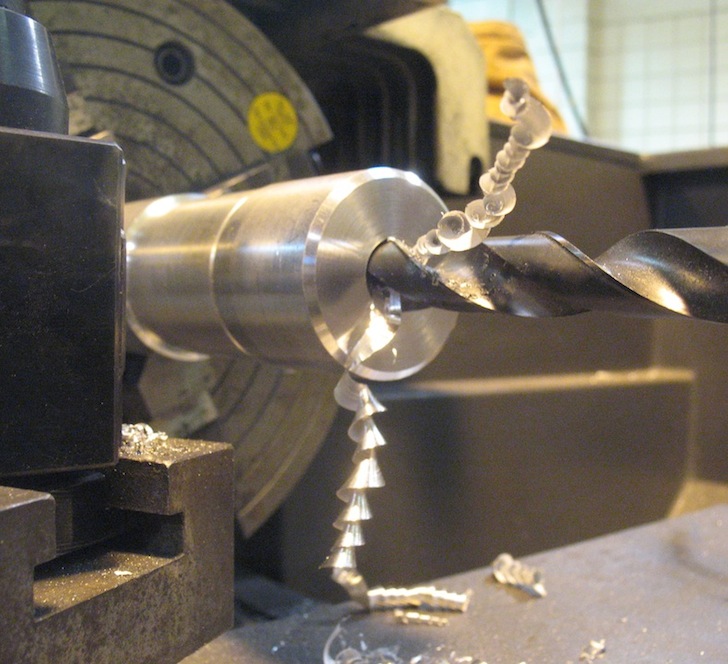 Drilling a hub center.