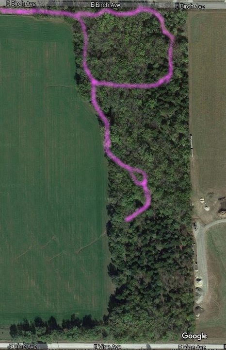 woodlot I've marked the road entering from the west at the north end