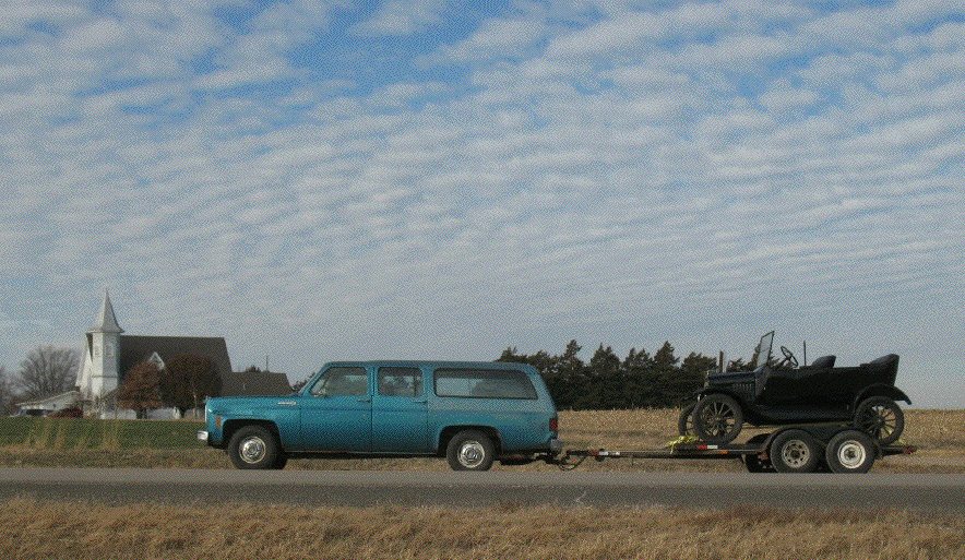 Yesterday Zeke and I took a ride to Nebraska. We spent the night in Beatrice, then this morning we went on up to the south side of Lincoln where I bought another car. The Camry is for daily driving, but this one is for fun: a 1923 Ford Model T touring. It's a nice straight restoration, not over restored, and I think I got a pretty good deal on it. It has a few details and one major item to finish, the major item being a top. It's good to restore a car that's in poor shape, but it's also good to have a fnished one to enjoy while you're restoring the other one.
