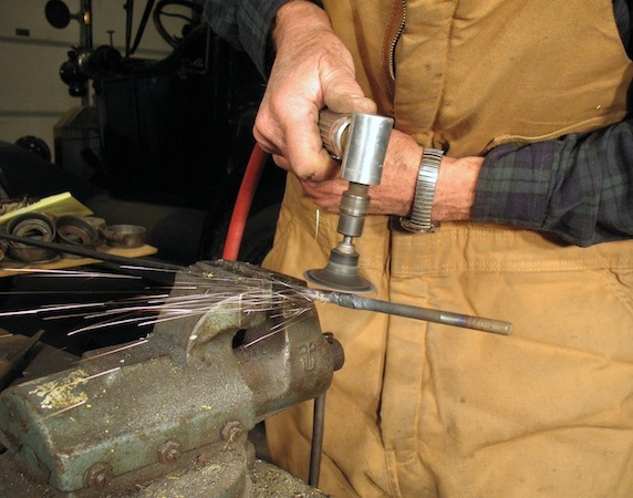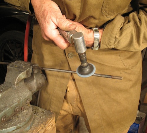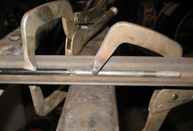 I added enough thread to a pair of 5/16-24 bolts to match the threads on an original brake rod, cut the heads off, and cut enough off the rods to make each rod & bolt combination 54" long. |