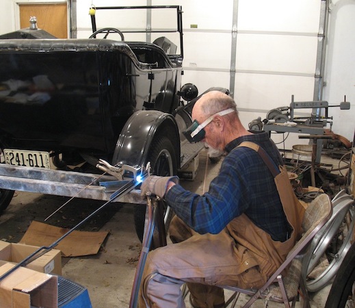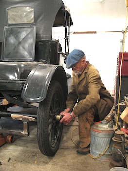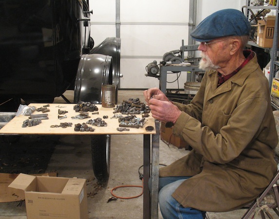 It all started with the intention to install the repaired brake rods in my roadster. But each rod takes a 5/16"-24 nut, so I went looking. There wasn't a single one in the hardware cabinet. That brought my attention to a couple of boxes. Each box contained a jumble of miscellaneous fasteners and other parts. Over the months when I was working on a project and had extra stuff left over, the stuff would go in a box and I'd think, "I'll sort that out later." Well, today was later. I spent a big chunk of my rainy day indoors sorting through both boxes, making piles of various items. A pile of SAE bolts, a pile of NC bolts, a pile of hex nuts, a pile of castle nuts, a pile of flat washers, etc. After sorting, I went through the hex nuts and found twelve of the one I needed. All twelve had been used before, and painted, but the smooth cadmium plating had caused a lot of the paint to flake off. So I wire brushed off what was left of the paint, gave them a bath of muriatic acid to remove the plating, prepped them with a phosphoric acid metal prep, painted them, and put them in the oven to bake. When I went to town for groceries, I also picked up fifty more of those nuts so I'll have plenty on hand the next time I need some. Saturday, December 6, 2014 It wasn't rain, but there was enough mist in the air to keep things soaked outside. I installed the "new" brake rods in the roadster and adjusted the brakes. I got the left wheel to lock up solid, but the right one moved a little. Looking a little closer I saw that the hub and drum weren't moving. The spokes were a little loose, letting the rim and felloe move. I took the wheel off the car and found some of the bolts were shot. Fortunately I bought some wheel bolts at Hershey in October, so I painted a set to install tomorrow. I should soon have the car ready to roll whenever weather permits. My other activity of the day was more parts sorting. I even found the box of grease cups I put away last spring and couldn't find when I wanted them. |